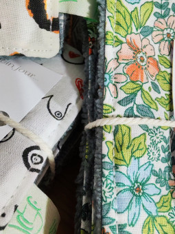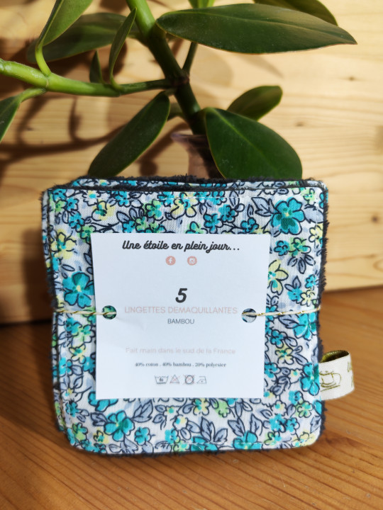 Lingettes lavables - Lot de 5 - Bambou et coton - Fait main en France